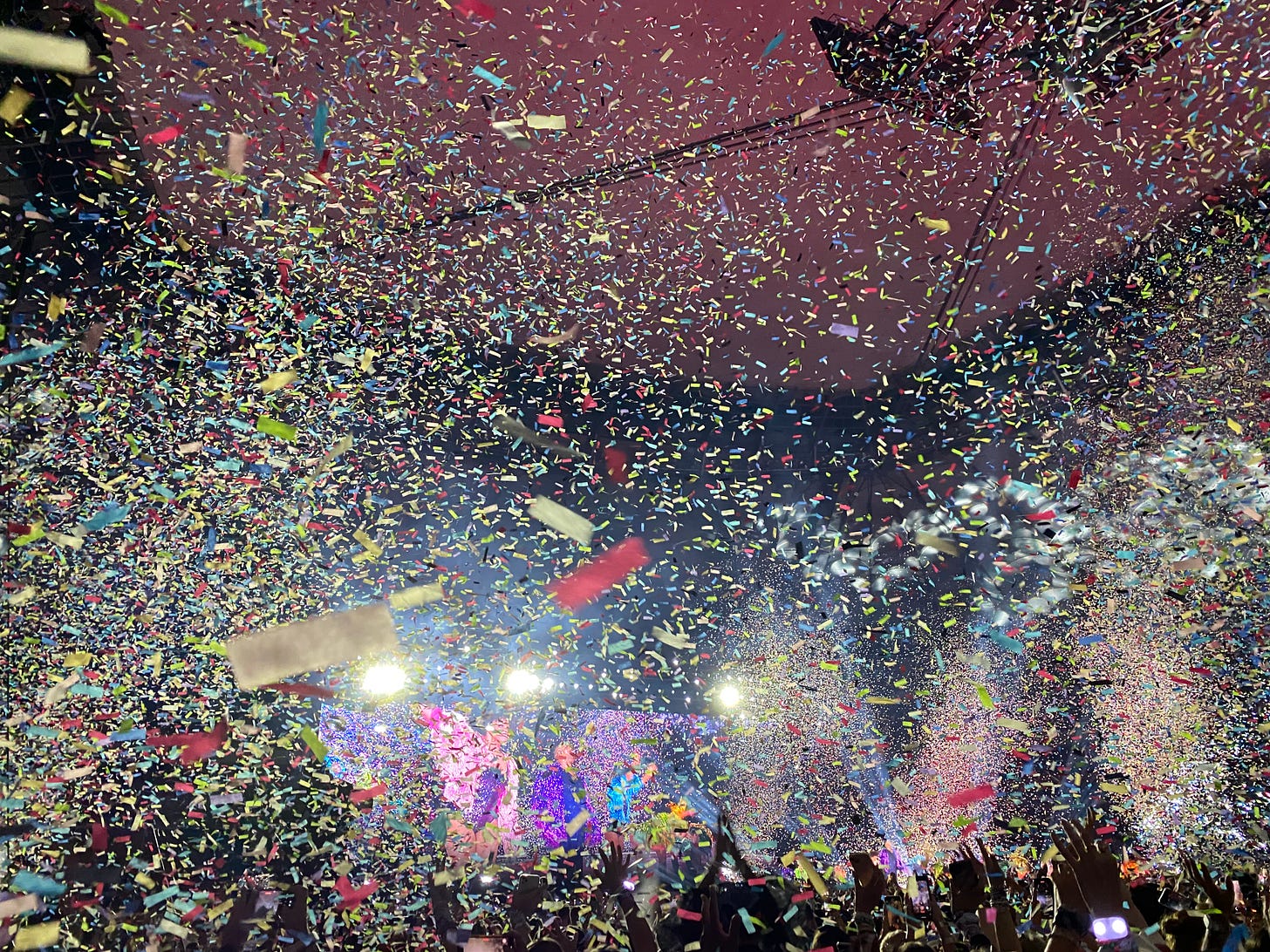 8. Sparkle. When the confetti dropped at the end of the show, and everyone’s bracelets started flashing, and the performers were taking their bows, everything seemed possible for a moment, and the world was alright. I left the concert grateful for the experience, and wishing we thought of journalism more often as making people feel like they’ve been through an unforgettable experience. The daily problems will be there when you wake up; can I make you forget about them for a little while?